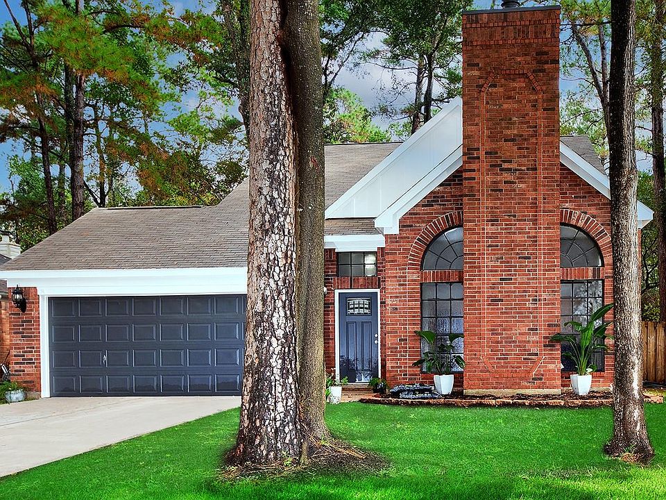 Lovely updated light and bright family home in quiet centrally located neighborhood in Cochran's Crossing close to schools, shopping and an easy commute to I-45... Truly Heart of The Woodlands! Home has amenities galore including fresh paint and flooring throughout, updated kitchen with granite and stainless appliances, modern bathrooms, tons of built ins, great office/study with private entrance if work from home plus a hidden room/play areas off an upstairs bedroom. Kids and grownups alike will love the privacy and work spaces for all. Large patio in freshly landscaped homesite provides a backyard with plenty of room for those kids to play and you to entertain all your family and friends. Home also backs to a greenbelt area with a walking path so no home immediately behind.