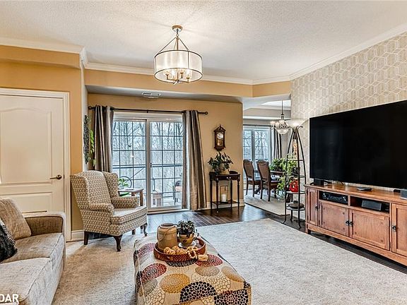 SPACIOUS 3-BEDROOM CORNER SUITE WITH 1,464 SQ FT, A FOREST-FACING BALCONY, TWO OWNED PARKING SPOTS & A LOCKER! Life slows down in the best way when you arrive in this quiet South Barrie pocket, a spot where wooded backdrops and daily essentials somehow feel perfectly aligned. Sitting among the trees, 44 Ferndale Drive South #212 offers 1,464 square feet of bright, comfortable living that feels like home from the moment you step inside. High ceilings, southwest light, and a warm sense of pride of ownership set the tone, while the building’s position backing onto EP land creates a peaceful forest view from the private balcony, making mornings softer and evenings easier. The galley kitchen brings together espresso cabinets, stainless steel appliances, a tiled backsplash, and tile flooring that stands up beautifully to real life. The living room opens to the balcony and flows into a more formal dining area, touched with crown moulding and a striking wallpaper feature wall that adds character. The primary bedroom gives you the quiet retreat you want at the end of the day, complete with a walk-in closet and a 4-piece ensuite. Two additional bedrooms and a second full bathroom add welcome versatility for guests, work, or hobbies. Everyday ease shows up in all the right places with in-suite laundry, two owned parking spots, an exclusive locker, and the comfort of an owned furnace and air conditioning system. This is a #HomeToStay that feels bright, grounded, and genuinely inviting the moment you step inside.