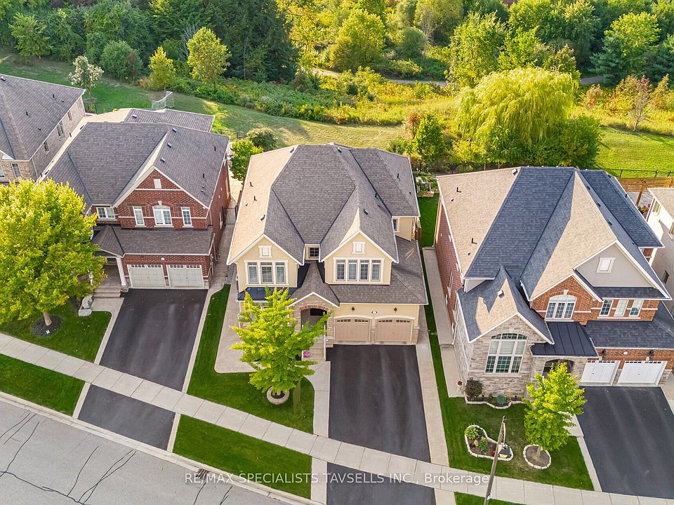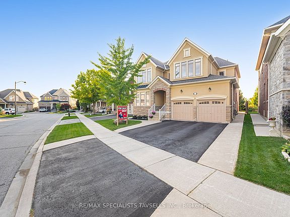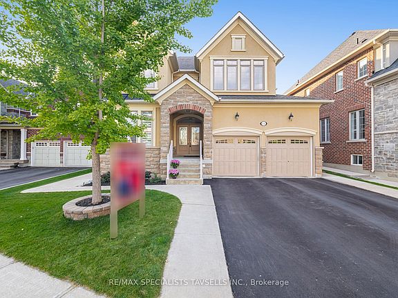 Welcome to this beautifully maintained 4-bedroom detached "Redwood" model home, situated on a premium 52-ft lot backing onto a serene ravine. Offering over 2,800 sq ft across the main and upper levels, plus an additional full unfinished basement space ready for your custom design, this home blends style, space, and comfort effortlessly. Step through double doors into a home that exudes curb appeal, featuring a luxurious stucco and stone façade, professionally landscaped grounds, and a spacious driveway. Inside, you'll find oversized tiles, stylish light fixtures, and hardwood flooring throughoutall in a carpet-free environment that showcases pride of ownership in every detail. The open-concept layout is anchored by a grand family room with soaring 17-ft ceilings, large windows, and a cozy gas fireplace perfect for both everyday living and entertaining. The main floor also features a separate living and dining room, plus a private office/library ideal for working from home. At the heart of the home is a gourmet kitchen, designed for the chef at heart. It boasts quartz countertops, modern stainless-steel appliances (Fridge - new Aug 2025, Dishwasher - June 2022 w/ 4-year warranty, Washer - July 2022 w/ 4-year warranty), and plenty of space for meal prep and hosting. Upstairs, the charming staircase leads to four generously sized bedrooms and 3 full bathrooms, including a primary retreat complete with a 5-piece ensuite and dual walk-in closets for him and her. Enjoy unobstructed, picturesque views from the rear of the home which backs directly onto a protected greenbelt with no rear neighbors. This prime location offers direct access to Snell Park, the Etobicoke Creek Trail, and a peaceful ravine setting. Additional features include:9-ft ceilings on the main floor, Cold cellar, A/C 2023......Don't miss this rare opportunity to own a stunning home in a highly sought-after location!