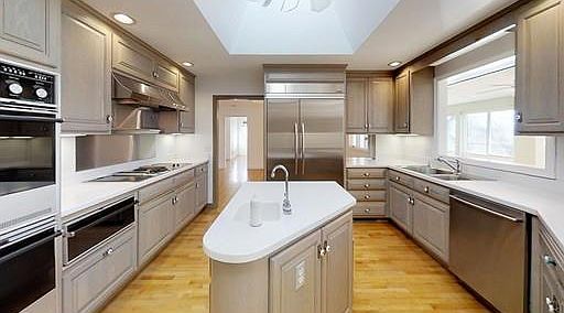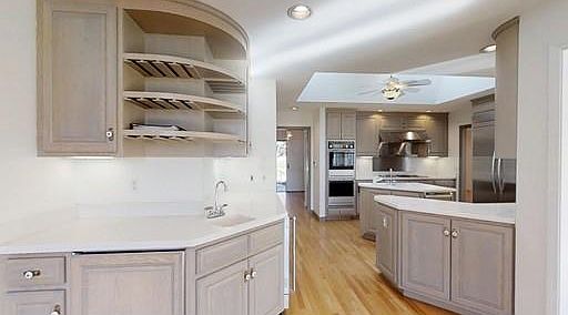 - Kit Dscrp: Ceiling Fan(s), Flooring - Hardwood, Skylight, Kitchen Island, Stainless Steel Appliances