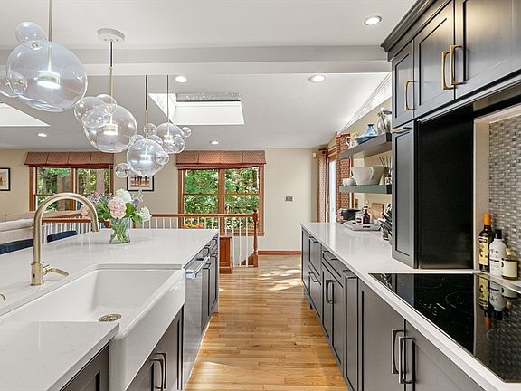 Beautifully renovated 11 Room, 4 Bedroom, 3.5 bath Colonial on 1.5 Acres. 3500+sf (w/ finished walkout Lower Level). Large, renovated Gourmet Kitchen w/ Thermador appliances, custom cabinets w/ built-in coffee maker, quartz counters w/ waterfall breakfast island, LR w/stone fireplace, 1st floor Office & optional additional Office or BR, (perfect for multi-generational living). Enormous Dining Room, Large, sunny Family Room w/ vaulted ceiling & skylights leading to finished walk-out Lower Level w/ Game Room, Bonus Room & full bath. Newly renovated 2nd floor Primary bathroom. Anderson sliding doors off kitchen open to Trex deck w/ hot tub. Newer front trex porch & stairs and newer walkway. Other features include: Buderus furnace & stainless steel oil tank, roof (2013), shed, Tesla charger, Vector security & keyless entry. Near Hopkinton State Park beach, boating & trails. Top-rated school system and easy access to Commuter Rail, 495, MA Pike & Rte 9!
