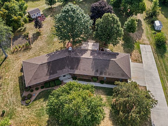 You must check out the incredible sounds and beauty at THE NATURE & WILDLIFE SANCTUARY within the Village of Fisher! Stop everything you're doing, take a moment to sit back and imagine the beautiful essence of your very own 3+acre property with an extensive WOODED BACKDROP, encompassing OWL CREEK quietly babbling by and the Sangamon River anchoring just a short distance beyond. Infinite species taking habitat within the open miles of wooded canopy and foliage allowing the most adorable and appreciative visitors such as deer, squirrels, birds and countless others to take refuge in your available safe space for a quick snack or a friendly glance at you. Truly YOUR OWN PRIVATE PARK/SANCTUARY, is in your sights upon stepping outside the patio door. (Must see aerials attached!) As you step through this door, besides the NATURAL SCENIC SITES, you will be amazed at the GIGANTIC MAINTENANCE-FREE DECK! This deck will make you speechless. The BUILT-IN BENCH SEATING exceeds the norm, is complimented greatly by the PERGOLA-LIKE STRUCTURE FOR SHADE, has a HOT TUB BUILT INTO THE DECK and a convenient concrete patio GRILLING AREA near by. This entire, ALL BRICK 1-STORY HOME with a 2-car OVERSIZED ATTACHED GARAGE and TWO PASSAGE DOORS is immaculate offering just over 3000SF combining the main living area and PARTIALLY FINISHED BASEMENT. ALL APPLIANCES STAY including washer, dryer and refrigerator in garage. The main level living space consists of 3 bedrooms, one of which is a PRIMARY SUITE, 2.5 baths, LIVING ROOM with GAS FIREPLACE, DINING ROOM w/OAK WOOD FLOORS right off EAT-IN KITCHEN, FAMILY ROOM that exits to deck and LAUNDRY ROOM with HALF BATH. Added bonuses a GARDEN SHED w/ROLL DOOR, decorative fenced-in established GARDEN and LONG CONCRETE DRIVE a huge plus bringing you home to the best residential site on Glenbrook Ct. There's only one way to absorb all this property has to offer and that is in person. Schedule your private showing today at 44 Glenbrook CT. You truly, will be glad you did! Motivated Seller!