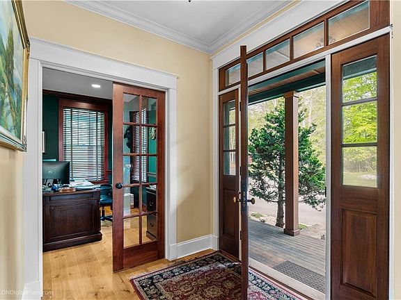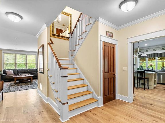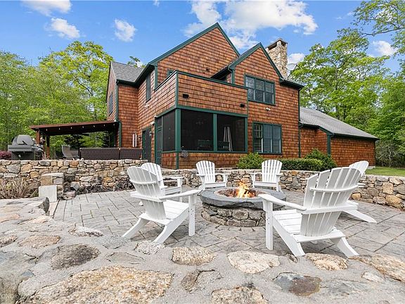 Private and serene setting for this custom built home abutting Weetamoo Woods! The winding driveway lined with stone walls leads to this stately home, situated on 2 acres. The beautiful covered porch provides a warm welcome. Upon entry you’ll find notable design finishes and soaring ceilings throughout. The kitchen was created for the discerning chef, with Wolf Range, panel-ready refrigerator, beverage refrigerator and ice maker, Bosch Dishwasher, Walk-In Pantry with Commercial Grade Refrigerator along with extra cabinets and plenty of counter space for food prep. The first floor boasts a large family room with beautiful wood burning fireplace with stone surround, French doors leading to a dining room and office, and a half bath. The primary suite is the showcase of the second floor, with a large deck, tremendous walk-in closet and ensuite bathroom with an elegant vanity and steam shower. The 3 additional bedrooms are generous in size and have a spacious hall bathroom. The systems in this home are impressive: Geothermal radiant heat, central AC, and an oversized generator to power the entire house! Extend your living space outdoors year round with the screened in porch, large patio and fire pit, beautifully built into the landscape. The oversized 2 car integral garage complete with heater is the icing on the cake. Call today to schedule your private tour.
