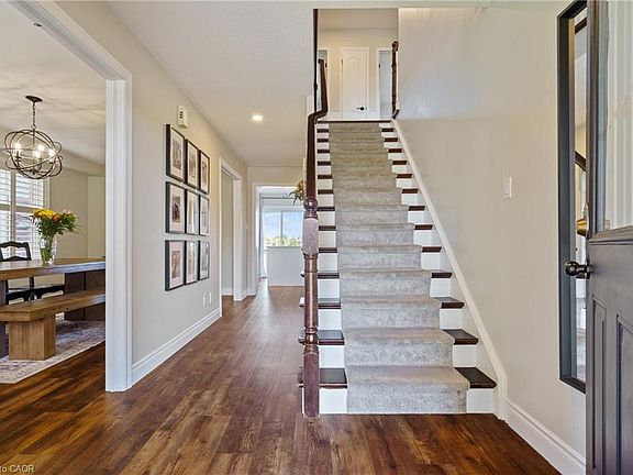 Welcome to 44 Grassyplain Drive, a charming red-brick home with great curb appeal and beautiful, award-winning gardens. Situated in a family-friendly neighborhood, this home is surrounded by well-maintained, detached properties. As you enter, you’re greeted by a bright foyer that leads to a sunny dining room and a spacious, open-concept kitchen and living room. The kitchen was updated in 2023 with quartz countertops, a matching backsplash, stainless steel appliances, and a central island with seating. The main floor is carpet-free, making it easy to clean, and has a practical layout for both everyday living and entertaining. Upstairs, the large primary bedroom features a walk-in closet and a private 4-piece ensuite. There are also three additional bedrooms, each with plenty of closet space and large windows that let in lots of natural light. A 4-piece bathroom and an office/flex space complete the second level. The finished basement includes a cozy rec room, which could easily be converted into another bedroom if needed. Outside, you can relax on the patio and enjoy the quiet view with no rear neighbors. This home is just minutes away from schools, parks, and the Ancaster Meadowlands Shopping Centre. Well-maintained and move-in ready, it has everything a growing family needs. Book a showing today before it’s gone!