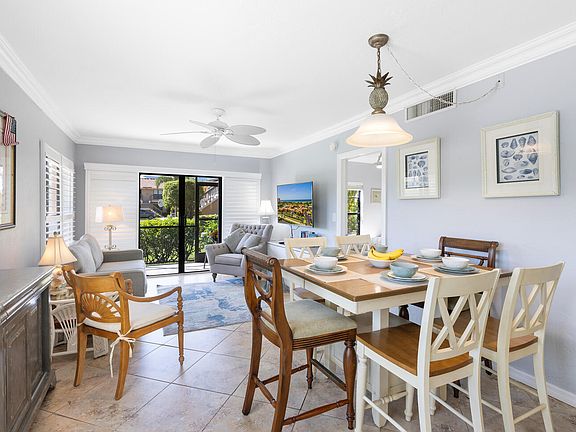 Enjoy the Florida sun all day long in this charming 2-bedroom, 2-bathroom condominium located directly across from Marco Island's world-famous Resident's Beach. With highly desirable southern exposure, this home is filled with natural light from sunrise to sunset, creating a warm and inviting coastal retreat. This first-floor condo offers ultimate convenience with a designated parking space right outside your door—no elevators or long walks needed. Inside, you'll find a spacious layout with two generously sized bedrooms, two bathrooms, and the added practicality of an in-unit washer and dryer. Elegant plantation shutters and crown molding in the living areas add timeless style and a touch of sophistication. The community is vibrant and well-maintained, featuring a resort-style pool along with beautifully landscaped grounds. Just steps from the beach, shopping, and dining, this location makes it easy to immerse yourself in the relaxed Marco Island lifestyle. Whether you're seeking a full-time residence, seasonal getaway, or investment opportunity, this sun-filled beachside condo offers comfort, convenience, and the best of island living.