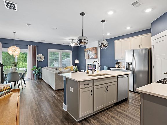 Welcome to your dream home in the highly sought-after Riverside area of Greer! Built in 2021, this stunning end unit townhome offers the perfect blend of modern elegance and comfortable living. Step inside and be captivated by the luxurious details and thoughtful upgrades throughout. As you approach the front porch, you'll feel the inviting charm of this residence, and that's just the beginning! Inside, the kitchen and dining area shine with custom light fixtures, adding a touch of contemporary sophistication to your gatherings and culinary experiences. The open-concept layout ensures seamless entertaining and easy flow between rooms. In the heart of the home, the living room boasts an electric fireplace, creating a cozy and inviting atmosphere for those chilly evenings or moments of relaxation, and TV mounts were thoughtfully installed to provide an immersive entertainment experience. Heading upstairs, the primary suite is a true sanctuary, featuring elegant trey ceilings that elevate the ambiance. Unwind after a long day in this private oasis, complete with a full ensuite bathroom and walk-in closet. The bathrooms boast upgraded ceramic tile, bringing an elevated touch to your daily routines and providing a spa-like atmosphere. As an extra perk, a custom butcher block desk in the guest bedroom offers the perfect spot for productivity or creativity, tailored to your specific needs. Every aspect of this home has been meticulously designed to offer both style and function. Moving to the backyard, you'll find a stone landscaping creating a serene outdoor escape for relaxation or entertaining. Whether hosting a barbecue or simply basking in the sun, this area will quickly become your favorite retreat. The garage offers ample room for parking and storage, providing a perfect solution for keeping your vehicle protected and your belongings organized. In addition, it features a convenient storage rack system and bike racks, making it a versatile space that caters to both your hobbies and storage needs. Don't miss this opportunity to own a beautifully crafted home with a variety of impressive features and upgrades. Schedule a tour today, and let this exquisite townhome become your forever haven.