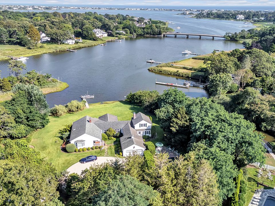 Views of quantuck bayElevated dining roomViews of sprawling lawnScreened porch