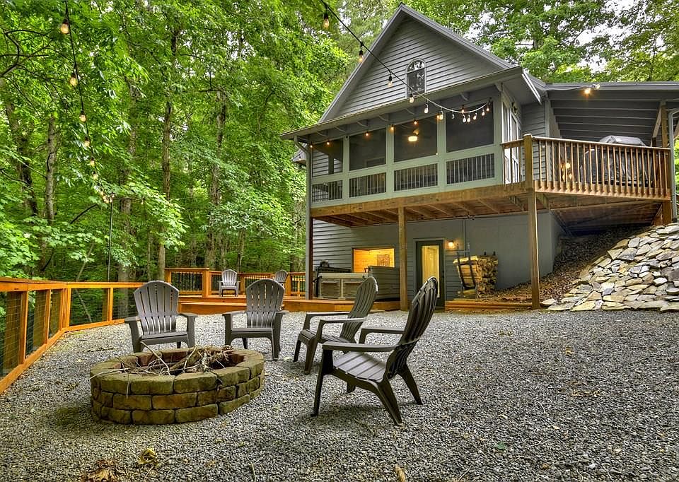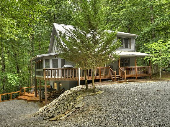 Check out this adorable mountain cabin in the popular Coosawattee River Resort! SELLING FURNISHED, this cabin features 3 bedrooms, 2.5 baths, and a large loft area, comfortably sleeping 8. Each level includes a bed and bath, ensuring privacy and convenience. The great room boasts a cathedral ceiling and a cozy gas log fireplace, creating a warm and inviting atmosphere. Adjacent is a dining area and a well-appointed, well-stocked kitchen with a pantry, perfect for preparing and enjoying meals together. Enjoy the outdoors on the rocking chair front porch, the screened porch, or around the fire pit adorned with party lights. Relax in the new hot tub or entertain family and friends in the game room and open-air bar area in the finished basement. Recent upgrades include a newly finished basement, hot tub, countertops throughout, kitchen backsplash, refrigerator, washer and dryer, mini-split HVAC units, sinks and faucets, exterior and interior paint, new interior lighting, door hardware, attic insulation, and new interior decor and furnishings. This cabin is perfect for a weekend getaway, a vacation rental, or full-time living. Located just 10 minutes from Highway 515, Downtown Ellijay, shopping, restaurants, and more! (Easy access with nice roads to the property, level driveway and plentiful parking.) Enjoy fantastic resort amenities, including 3 pools, river parks, hiking trails, a fishing lake, a recreation center, fitness facilities, and courts for basketball, tennis, and pickleball. Don't miss out on this exceptional opportunity—contact us today for a private showing and see the full list of improvements!