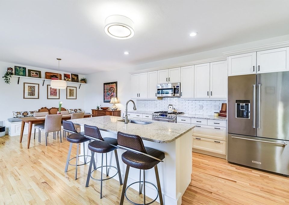 - Features: Flooring - Hardwood, Pantry, Countertops - Stone/Granite/Solid, Countertops - Upgraded, Kitchen Island, Cabinets - Upgraded, Exterior Access, Recessed Lighting, Slider, Stainless Steel Appliances, Lighting - Pendant
