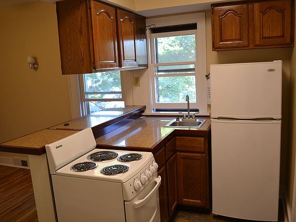 Newly updated, first floor 2 bedroom apartment. ready for immediate occupancy. This apartment, on a quiet street, is within minutes from downtown. New windows throughout along with updated kitchen while still maintaining its old world charm. Front porch and patio access at your front entrance. Off street parking for two vehicles, heat and onsite laundry included at no additional charge. This unit is nonsmoking. A nonrefundable credit and background check required. Please call to schedule a viewing. Heat included