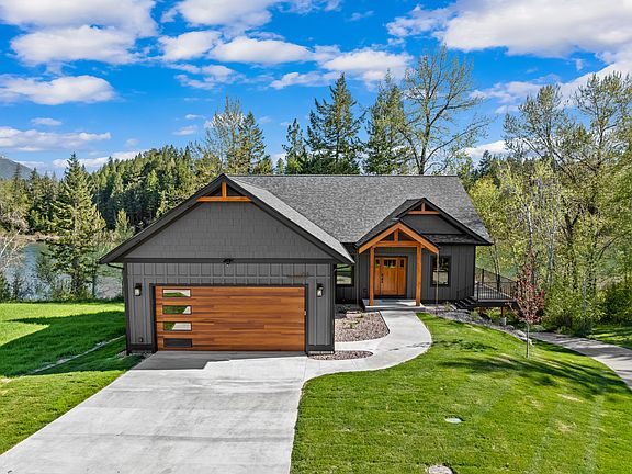NEW custom home along the Flathead River in the charming town of Columbia Falls, this 4 bedroom, 3.5 bath home is designed with you in mind. Perfectly situated between Glacier National Park and Whitefish, one of the highlights of this home are the outdoor spaces. Step outside to a private hot tub, sauna, a deck with outdoor seating, and a fire pit perfect for morning coffees, and evening cocktails. The property is also equipped with a Tesla charger.