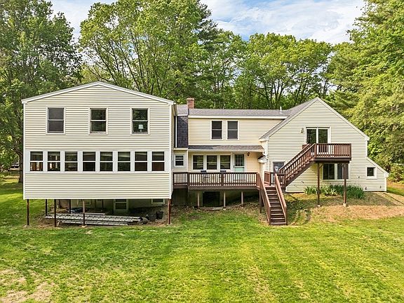 Beautiful 4-bedroom Gambrel in the heart of desirable Stratham! Flexible living space. Eat-in kitchen features granite countertops, ample cabinet space and a slider leading to a large 3-season sunroom perfect for entertaining or relaxing. Step out to the back deck and enjoy the wooded views. First floor includes living room with electric fireplace, full bath, first-floor bedroom or office, and entry room with direct access to the oversized 2-car garage with bonus ‘shed’ area. Upstairs, 4 spacious bedrooms, a home office, and a large bonus room over the garage. Unfinished walkout basement with laundry hookups and ample room for storage or future expansion. Recent upgrades include a 2023 boiler with 5 zones and brand-new septic system in 2024. Easy commuter access, minutes to Portsmouth, Exeter, beaches, shopping, and more. Home has been pre-inspected for peace of mind! Open House Sat 10/11 1-3pm.
