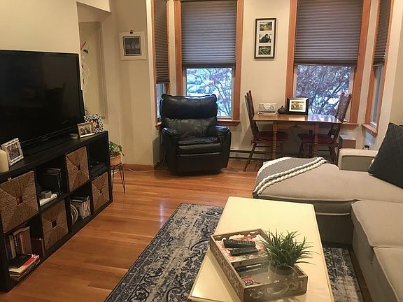 Sun filled 1 bedroom featuring oak floors, recessed lighting, and 9-foot ceilings. The kitchen offers granite counters, stainless steel appliances, including microwave, exposed brick, and custom cabinets. PRIVATE OUTDOOR SPACE - balcony off of kitchen with plenty of room for a table and chairs. Custom Bali blinds and elegant Casablanca ceiling fan in the living room. Easy access to McGrath highway and Route 93. Somerville Public Library across the street and just a short walk to grocery stores. Public transportation steps away. On-site Laundry and PRIVATE STORAGE in the building! Professionally managed.