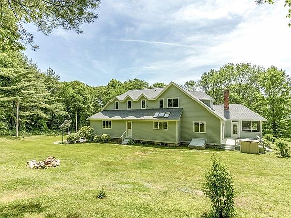 Bright & sunny custom designed Contemporary Colonial on 4.6 ac. Enjoy the tranquil setting relaxing in the screened porch or on the private deck. Large foyer entry w half bath then step into the living room with HW floor, vaulted ceiling, fireplace and custom French doors to the dining room w HW floors and Atrium door to the deck. Sunny white cabinet kitchen offers skylights, large eating area & an Atrium door to the front perennial garden plus convenient 1st floor laundry room and easy access to the private backyard enjoyment. Great family room for entertaining and sitting by the gas fireplace during the winter months! New upgraded vinyl plank flooring in the family room, baths and main bedroom. Upper level offers Main bedroom with cathedral ceilings, fan/light, walk in closet, main bath plus 2 additional bedrooms with Jack/Jill bath. You will appreciate the ceiling designs throughout the home! NEW HEATING UNIT & ROOF, 200 amp CB. Stonewalls, flower gardens and privacy!