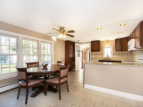 Ranch style home offering over 1700 sq. ft of single level living in established Whitman neighborhood. Be greeted by the Large Living Room w/ exposed beams, hardwood floors, wood burning fireplace, and abundance of natural light. Open floor plan flows into the fully remodeled Eat in Kitchen featuring new windows, granite counter tops, tile flooring, recessed lighting, garbage disposal and pantry providing plenty of storage. Remodeled Full Bath w/skylight and wood floors. 20 X 22 Family Room adds fabulous extra living space. Large Master Bed w/ double closet & bamboo floors. Two additional Bedrooms with hardwood floors & ample closet space. Home features new roof (2018) and partially finished heated basement. Enjoy the ever convenient Mudroom with sliders leading to deck overlooking a fantastic level, fenced in back yard. In ground Pool features new motor and filter ( 2017) new liner (2013), and Cabana has electricity. Great location convenient to Commuter Rail.
