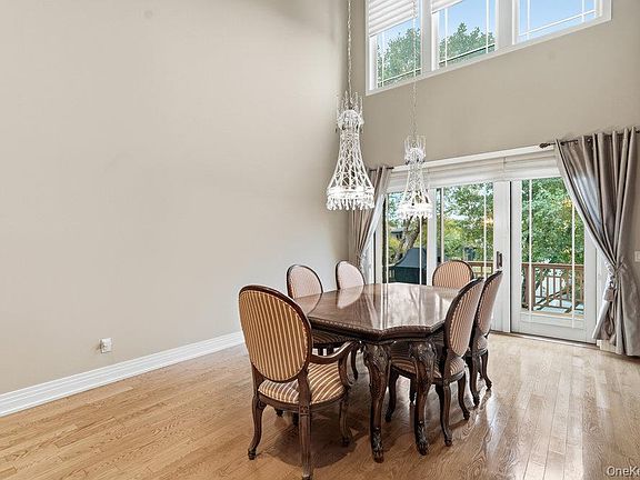 Highly sought-after Graycliff model backing a scenic pond with fountain in the impressive gated community, Hamlet Estates at Jericho. This elegant home offers 5 bedrooms, 4.5 baths, office and a 3-car garage across 3 luxurious levels. Main floor features a 2-story living and dining room with outside exit to deck, eat-in kitchen open to den with fireplace, powder room, laundry, and rare first floor bedroom with full bathroom. Enjoy outdoor living on the oversized Trex deck overlooking the pond. Upper level includes 2 bedrooms full bathroom, additional bedroom with private bath, and a spacious primary suite with marble bathroom. Lower level with above ground exit features an office, full bathroom, den, play area, storage closets, laundry room, theater room and a custom wet bar with access to a covered patio. Additional highlights include tray ceilings, 4-zone heating/electric and central vacuum. Resort-style living at its finest.