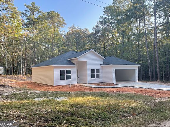 This home is Under Construction Now, will be move in Ready Oct 2025. Looking for a brand new ranch style home on a nice private lot in Woodbury? We have 2 to choose from. This home is on a short quaint dirt road with 2 other homes. 1504 heated sq ft 4 bedroom/2 bath ranch home on 0.766 wooded acres with city utilities. This gem has plenty of space between neighbors, w/easy access to downtown Woodbury, Greenville, Zebulon, Newnan, Senoia. The kitchen has granite tops, soft close cabinetry and s/s appliances, overlooking the family room and dining area. This is a split bedroom plan. The owners suite features trey ceiling, his/her sinks, separate garden tub/ shower, and nice walk in closet. Bedrooms/closets will be carpeted & the rest of the home with Luxury Vinyl Plank flooring. Bathroom vanities are comfort height. Brushed Nickel accents. Smooth ceilings. Ceiling fan in family room and master bedroom. Fireplace in family room. Back patio. Level yard with lots of space to entertain, play with the family or just sit and relax. Total electric. No hoa. USDA area, public water, sewer and hi speed internet****Photos of finished home uploaded are from a previous build-elevation, finishes and color selections may vary. *** AGENTS PLEASE READ PRIVATE REMARKS.*** We have 2 homes at this location. Preferred Loan officer: $3,000 toward cc PLUS Lender Credit-ask Christy for Details.