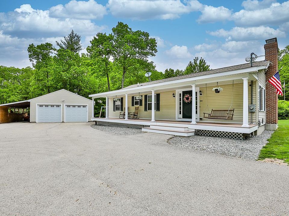 If you are looking for single level living, look no further! This charming 2 bedroom, 2 bath ranch has been updated throughout. Situated on a 2.28 acre lot, this home boasts a 2 car detached garage, hardwood floors throughout, a laundry room on the first floor, a wood burning fireplace, an expansive front porch and more. The full basement is ready for your finishing touches. This conveniently located home offers a tastefully landscaped yard with irrigation, a paved driveway and more. This coupled with the award winning Hollis/Brookline school district makes this a must see home. Call today to schedule a private showing.