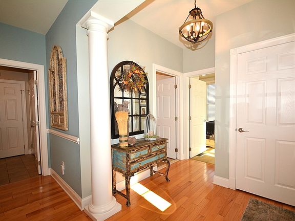 Spectacular Walnut style home at the sought after Regency! This rare style offers 1st floor living with a great open layout, vaulted ceilings, an abundance of natural light. There are so many stylish upgrades to give this home such a custom,designer look! Gourmet upgraded kitchen with Kitchen Aid appliances, huge island/breakfast bar, beadboard, under cabinet lighting & opens to an enlarged deck with wooded views. Fireplaced extended living room. The Formal dining room was also extended & is accented by 2 columns. King sized Main bedroom with an elegant bath featuring a dbl granite vanity, spacious tiled shower with frameless door. Walk in custom closet. The guest bedroom features walls of windows. The guest bath was upgraded with a quartz vanity & tiled tub area. The lower level offers a huge family room, Game room, bathroom plus a Walkout to a large patio. Wow! The Regency is a wonderful, social community with a Clubhouse, pool, tennis/pickleball, bocce, walking trails.