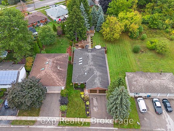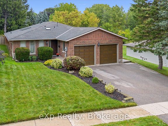 Welcome to this stunning 2,200 sq ft bungalow tucked away on a quiet dead-end street in one of Guelphs most peaceful, established neighborhoods. Surrounded by mature trees and nature, this custom-finished home offers privacy, tranquility, and the ease of single-floor living. Step inside to a spacious open-concept layout filled with natural light, thanks to thoughtfully placed skylights and quality construction throughout. The heart of the home features a beautiful great room with gas fireplace, that flows seamlessly into the custom Barzotti kitchen with granite countertops, built in appliances and a large entertaining island with seating, If you need more entertaining space, the separate diningroom with built in china cabinet offers a more formal seating space. The large master bedroom has a walk in closet that is big enough to double as a home office and also features an ensuite with a soaker tub and separate shower. The second bedroom is also a good size and features a double closet. Take the indoors out to an enclosed 3 season sunroom that opens to a stunning backyard oasis. Outside, you will find a professionally landscaped space featuring a custom stone BBQ area, bar, cozy sitting zone, and a handy garden shed. The 2 car garage is loaded with additional storage space. This stunning family home was custom designed and built in 1983 and then completely redesigned inside for the next generation of the family in 2010. This home is ideal for professionals, retirees or anyone seeking the comfort and convenience of one-level living without compromising on style or space