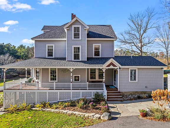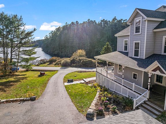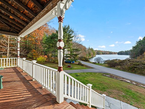 Classic 1890s shingle style Queen Anne with deep water dock across the street. This year-round treasure has been lovingly maintained with her current stewards adding a new kitchen, new roof, new windows, new light fixtures, new patio and stonework, new bathroom as well as a new well and water system. Large kitchen with dedicated eat-in nook, formal dining room, two water view parlors, spacious laundry, full bath and wonderful mudroom complete the first floor. 4 bedrooms and a new full bath on the second floor. 3rd floor has 3 more summer bedrooms with plenty of nooks and crannies. Tons of room inside and out with the custom stone patio and over 8 acres of woodlands up the hillside. Wonderful wrap -rocking chair porch with lovely long views down the cove. The deep water dock is across the street on almost an acre of waterfront. Ideal for kayaking, canoes and boating. This gem is ready for her new stewards.
