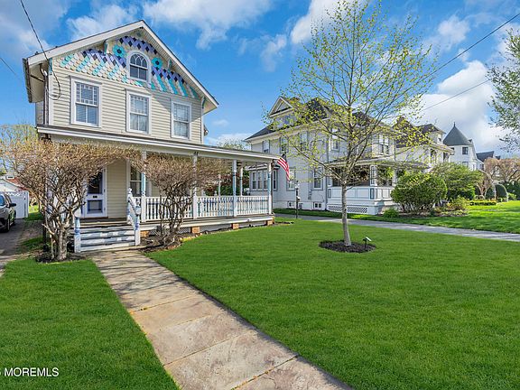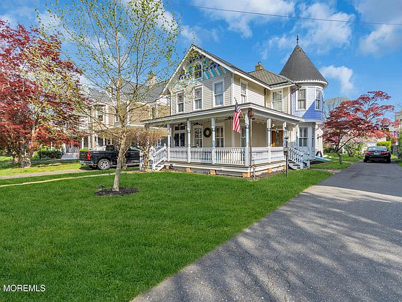 Welcome to 44 Irving Place! Charming is an understatement when it comes to this classic stunning Victorian home situated on one of the most desirable streets in all of Red Bank! The first street in Red Bank to get electricity, the homes Carriage Stone, with the original owner's name engraved sits curbside, waiting for the day the horse and carriage return. The oversized wrap around covered porch made of 5/4 Ipie/Teak decking with overhead lighting and ceiling fans is perfect for warm summer evenings. Step inside where you'll find so many historic features from custom wood trim, bay window, to doorknobs, doors, railings, spindles and so much more. Main level offers living rm/dining rm/attached sitting area and powder rm. Chef's kitchen offers beautiful cabinetry, Quartz countertops, Viking range, 42' copper sink, tile backsplash and so much more. Recent addition is the great room off the kitchen with custom wood burning fireplace, soaring ceilings, recessed lighting and french doors leading out to newer maintenance free deck perfect for grilling, entertaining or relaxing. Second floor offers a generous size primary suite with newer renovated full bath. 3 additional bedrooms (1 made into a full laundry room) all with gleaming hardwood floors and a gorgeous newer hall bath round out level 2. Fantastic level yard with room for a pool with a detached garage ripe for renovation if you choose, as well as a walk-up unfinished attic and a walk-out bilco door basement. Access to basement from inside the home as well. Some newer items to worth mentioning. Air conditioning, Weil-McLain hot water heater and boiler, cast iron radiators, Marvin custom windows and so much more. Make Red Bank your next home and enjoy the Jersey Shore lifestyle. Short distance to NJ's hottest beaches and minutes onto commuter highways. No car need for all the wonderful restaurants, theater, music venues and shopping right here in Red Bank. Hurry don't wait. Make your appointment today!