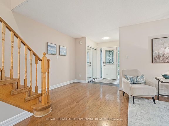 Lowest-priced home in Georgetown South, and it comes with no condo fees or rental items! First time offered for sale, this 1,743 sq ft home (per MPAC) with an unspoiled basement is ready for its next chapter. The renovated kitchen opens to a family room and a walkout to the three-season sunroom, extending your living space. The main floor also features hardwood throughout, a convenient powder room, and an open concept living/dining area perfect for entertaining. Upstairs, you'll find two oversized bedrooms and two full bathrooms, offering comfort and flexibility. Additional highlights include a hardwood staircase and hardwood flooring on both levels, a fully fenced yard ideal for gardening or relaxing, and parking for two (garage + driveway). Located within walking distance to top-rated schools, shopping (Metro, Shoppers, LCBO, banks), parks, and with easy access to major highways, this home truly checks all the boxes. Don't miss this opportunity to make Georgetown South home!