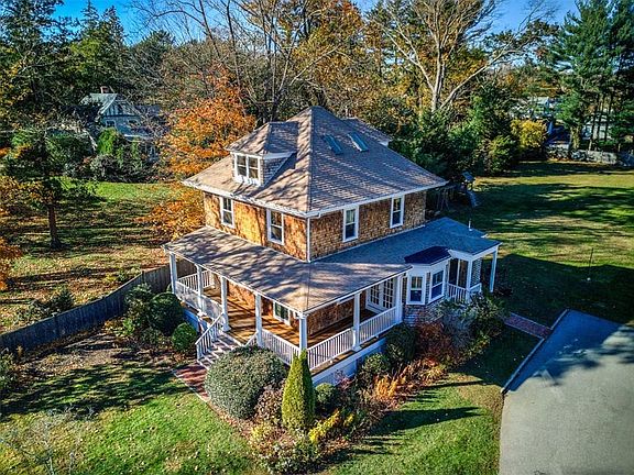 Walk to town, Barrington Harbor and bike path from this charming historic colonial on Barrington's highly coveted Jenny's Lane. Built in 1900, this delightful home boasts the original details of the era; oversized mahogany front porch, gorgeous hardwoods, antique stained-glass window and beautiful moldings throughout, yet has been thoughtfully updated while still preserving the character of the home. The sun-filled updated kitchen has new stainless appliances, a large center island with honed granite counters and a cozy breakfast nook with banquet seating. A lovely deck off the kitchen offers unobstructed views of the park-like backyard with mature perennials and a completely private ¾ acre yard. The second-floor features 3 bedrooms and 1 full bath with an additional 4th room leading up to a large fully finished 3rd floor that could be used as a master suite, private guest quarters or large family room/rec room. The basement has been partially finished to accommodate an exercise area and play space. This very special home is an incredible opportunity to live in a quaint seaside location. Check out our virtual tour!