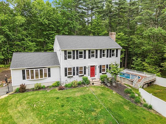 OFFER DEADLINE MONDAY 6/9 at 6PM. Charming 3-Bedroom Home in the Heart of Goffstown! Nestled in a quiet dead-end neighborhood in the quaint town of Goffstown, this beautifully maintained home offers the perfect blend of comfort, style, and space. Inside on the first floor, you'll find a large cathedral-ceiling living room that fills with natural light and has direct access to the back deck. The modern kitchen features granite countertops, stainless steel appliances, ample cabinet space, and barstool seating. The dining room connects with a second living room that has a wood burning fireplace. The first floor also features office space and half bathroom. Upstairs, you will find all three bedrooms and a shared full bathroom. The primary bedroom has an ensuite bath and a walk in closet with laundry. Downstairs, the basement is finished with a half bath that makes it perfect for a home theater, playroom, gym, or additional living space while the two-car garage provides ample storage and parking. Enjoy summer days by the above-ground pool with privacy on your 1.13 acre lot. Don’t miss this opportunity to own a turn-key home in one of Goffstown’s most desirable locations!