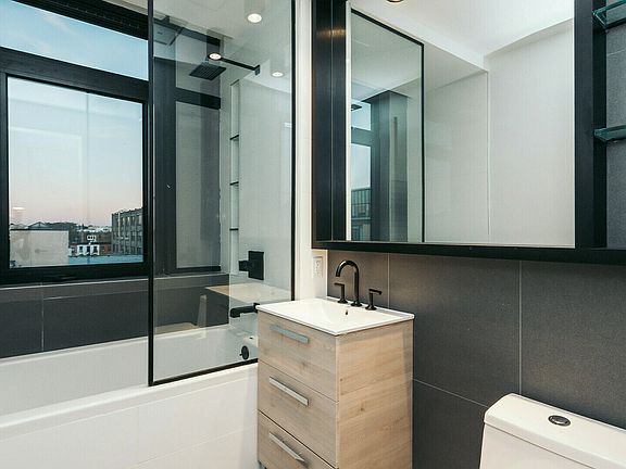 Spacious 2 bed at a new 42-unit building on the waterfront in Greenpoint, BK. Finished rooftop provides uninterrupted views of Manhattan and the Williamsburg Bridge. The building is equipped with a fitness center, bike storage, business center, and parking is available. All units are fitted with luxury amenities: central air, dishwashers, stunning hardwoods, designer windows, and more. Message today to set up a viewing!