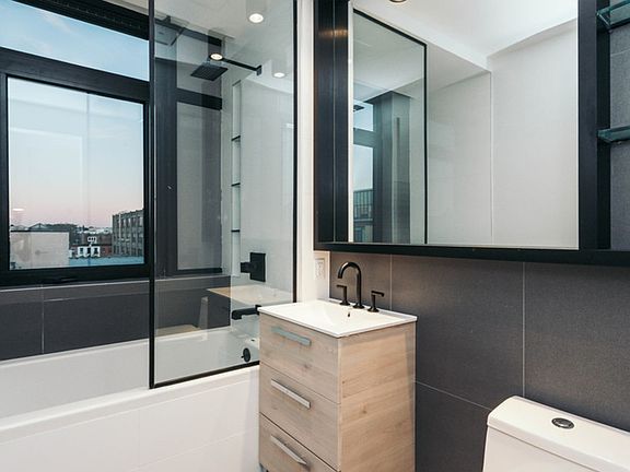 Brand new 42-unit building on the waterfront in Greenpoint, BK. Finished rooftop provides uninterrupted views of Manhattan and the Williamsburg Bridge. The building is equipped with a fitness center, bike storage, business center, and parking is available. All units are fitted with luxury amenities: central air, dishwashers, stunning hardwoods, designer windows, and more. All units range from 1-3 bedrooms.