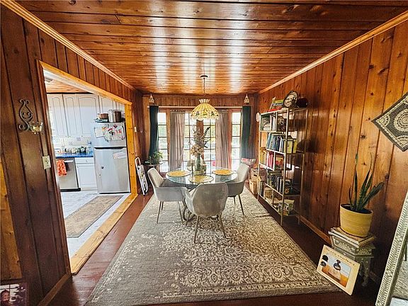 Finished roomsWood-burning fireplacePrivate acresSpacious deckRocking-chair front porchWooded sceneryHome theater