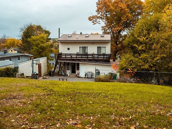 Tired of standard cookie-cutter houses? Don't miss out on this unique 3 bedroom, 2 bathrooms contemporary home! Many updates have already been made, with plenty of opportunities to add your own personal touches. The sunny eat-in kitchen showcases wood cabinets and solid surface countertops, while the oversized living room boasts gleaming hardwood floors and recessed lighting. An added bonus: a side-by-side first-floor bedroom and full bathroom. Upstairs you will find two additional bedrooms with a second full bathroom. This home has too many charming accents to name, including octagon windows, dual spiral staircases, and tongue and groove pine ceilings. Outside, enjoy your spacious deck with built-in bench seating - plenty of room for entertaining or relaxing while taking in the view of your expansive fenced-in backyard. A one-car garage and shed provide ample room for storage, in addition to a large basement with potential for finishing.