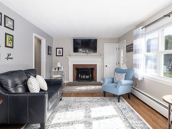 Lovingly maintained ranch on a quiet dead-end street. This neat and clean home features gleaming hardwood floors, a cozy fireplace in the living room with a large picture window, and an updated kitchen with newer stainless steel appliances. The dining room offers flexibility as a formal space or home office. An updated bathroom, central air, and all new windows add to the comfort and convenience. Step outside to the private deck with pergola, creating a three-season retreat perfect for relaxing or entertaining. Half of the basement is finished and heated. The basement also offers lots of storage and is framed for an additional bathroom, offering great potential for expansion. This charming home is move-in ready and waiting for you.