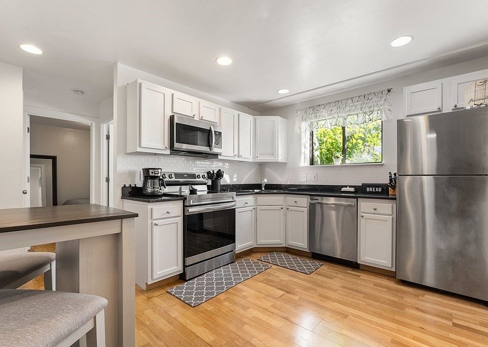 - Features: Flooring - Hardwood, Countertops - Stone/Granite/Solid, Cabinets - Upgraded, Recessed Lighting, Stainless Steel Appliances