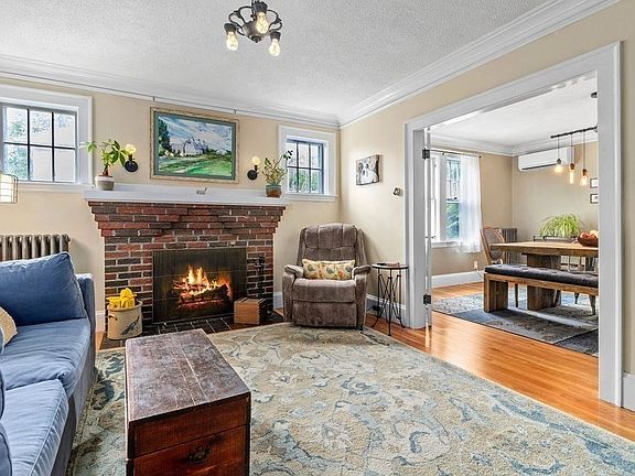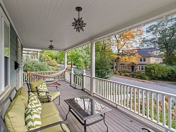 Charming, sunlit home on a lovely street in a fabulous location. The welcoming generous front porch is so inviting and absolutely perfect for morning coffee or evening drinks with friends and family. When you walk into the house you will be in awe with the lovely bright living room with crown molding, gleaming hardwood floors, a wood fireplace and French doors leading to the lovely dining room. The kitchen is updated and has all new (2017) appliances including a gourmet wolf stove. The second floor offers 3 bedrooms with hardwood floors, bathroom with a marble floor and a linen closet in the hallway. The yard is expansive with new plantings and a new fence and a stone patio. Parking for 4 cars and a 1 car garage. This property had many updates and is move-in ready. FIRST SHOWINGS AT SATURDAY OPEN HOUSE 2-4....