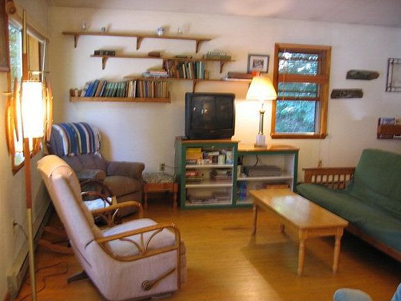 PRIVATE CHALET ON LAKE SIMOND Exellent 3BR, 1BA chalet situated in a very private location with 400 feet frontage on beautiful Lake Simond. Entrance is ground level and you have a walk out finished bedroom basement toward the lake. The main floor is an open chalet styule year round home with great waterfront and a dock. It has a great vacation rental history.