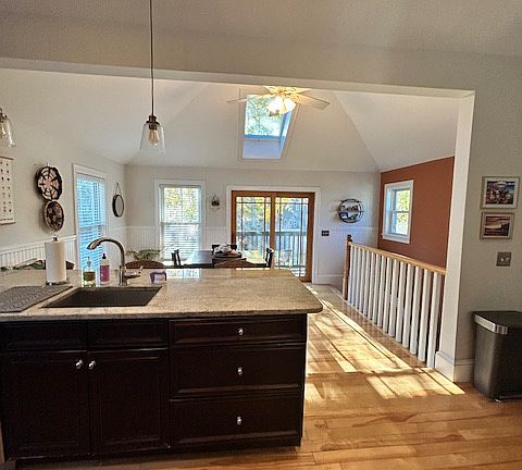 This beautiful apartment offers hardwood flooring in the living areas, a bright modern kitchen, with granite counters and stainless appliances, which opens to a family / dining room with vaulted ceiling and a private balcony overlooking a huge yard.