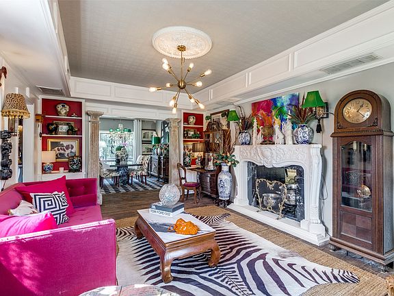Behind the gates of Country Ridge, a retreat unfolds on 1.82 acres of whispering trees and a creek with serene views. Tucked at the end of a cul-de-sac, privacy is a presence, 2,839 square feet of artistry where rooms glow with natural light and gathering spaces embrace the warmth of a double-sided hearth. Granite shimmers in the kitchen, cabinets brushed anew, golden touches lending quiet opulence. The primary suite, its own haven, with its own fireplace and marble-lined bath featuring a custom walk in shower. Walls of glass invite the eye toward treetop and nature views, while patios and covered alcoves extend life into the garden, where solitude meets celebration. The dedicated study captures the beauty of nature, perfect for work or reflection. Designed for both entertaining and everyday living, this home offers timeless character, modern updates, and unmatched privacy, all just minutes from city conveniences. A rare sanctuary where luxury, nature, and location unite.