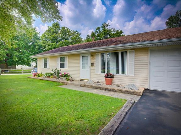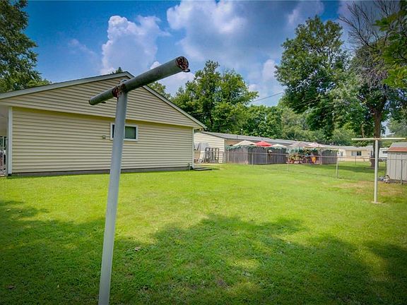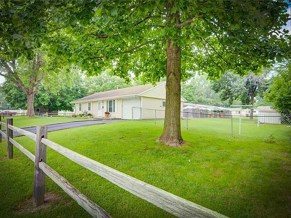 This vinyl sided ranch home sits on a fenced corner lot. Spacious living room and 3 bedrooms have nice neutral carpet. An eat in kitchen comes will all the appliances plus the washer and dryer. The fenced back yard would be perfect for your pet. The attached garage has a workshop area. The home has newer replacement windows, slider to patio and exterior front door. Furnace and AC, 2005. Water heater, 2017. Hall bath was remodeled with new shower, tub, vanity, 2020. The house has an attic fan, which has not been used for several years. Seller reserves the Ikea cabinets in the living room.
