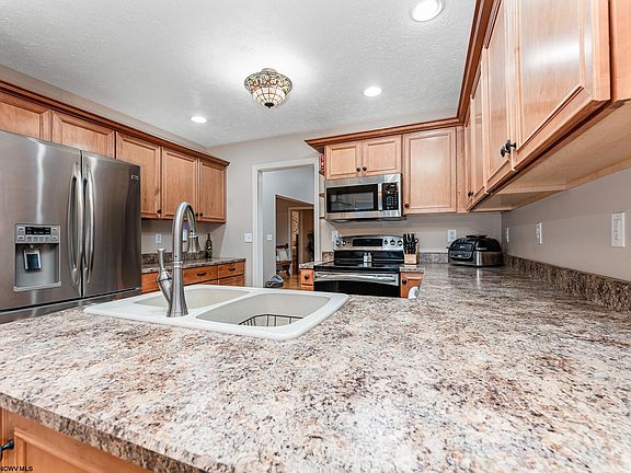 Beautifully Maintained Large Split Level Home. Hardwood floor through main living. Eat-In Kitchen also with a separate dining room. Primary bed with primary bath (includes garden tub and new tile shower) on the same floor with two other bedrooms. High vaulted ceilings in the living room that looks out onto the fenced back yard. Living room and gathering room both have gas fireplaces. Extra bedroom on lower level. Bonus storage/Room accessible from inside the garage. New decking was just installed in 2023. Please give Sellers a 24 Hour Notice for Showings.