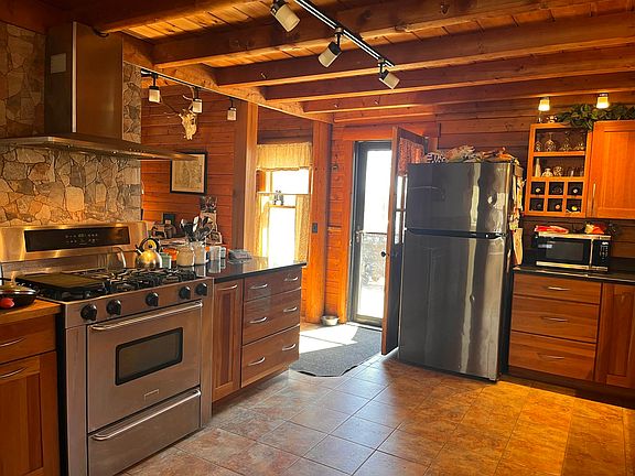 An abundant Blueberry Meadow with 800 berry bushes and a handsome Ward White-Cedar Log Home on 4 acres of beautiful land. The home is set back from the road with a horseshoe driveway providing lots of space for your vehicles. It is also located on one of the choice neighborhood roads in town with no thru traffic as the road ends and turns to class VI; A great area for walking. Center stage is the soaring Rumford fieldstone fireplace and beautifully appointed kitchen with cherry cabinets, granite counter tops, gas range, decorative stone wall, oak pantry door, and updated water lines and fixtures. There are 2 first floor bedrooms and the upstairs provides open space for a primary bedroom and studio. Some of the additional enhancements are a fully renovated bath including fixtures, vanity, stonework, water lines and plumbing. The Hellenbrand Iron Curtain filtration system keeps the water pristine and on the demand propane hot water provides efficiency in the home. The Chimney has been re-pointed and fitted with a new cap. The home is heated with both oil and wood and is generator ready. Sip your favorite beverage in your favorite chair on the covered front porch or enjoy the view of your blueberry meadow from the back deck. The blueberries have been managed by a local farm and are plentiful and delicious! This was once a working blueberry farm and could be again, or enjoy it all for yourself! A true relaxed country setting and just a half hour to Keene or the MA boarder.