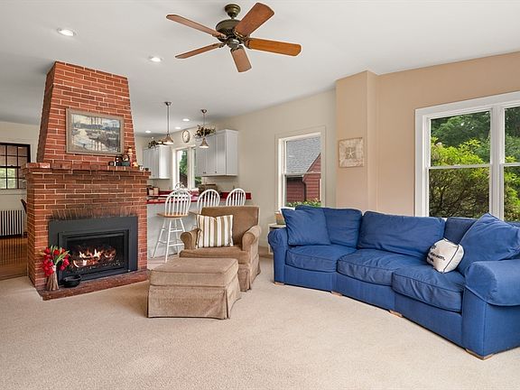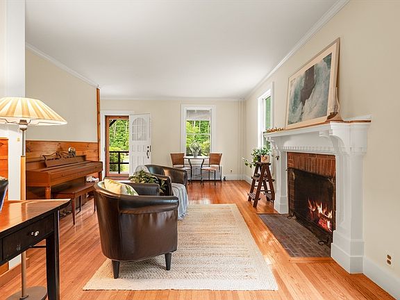 Updated country home on 2 generous acres blends classic farmhouse styling with modern functionality and comfort. The first floor offers a front-to-back living room with fireplace and hardwood floors as well as a comfortable open family room-kitchen floor plan. The large eat-in kitchen has newer appliances, propane stove, Silestone countertops, exposed brick, loads of storage, and an adjacent half bath/laundry room. The second floor features a primary bedroom, two additional bedrooms and a two-room full bath suite. A walk-up attic as well as several unheated enclosed porches are perfect for storage as is or have the potential for added finish space. Recent updates include: Hardie Plank siding, roof, septic, windows, and oil boiler. This property also offers a detached garage with workshop PLUS a guest cottage with kitchenette, bath and private patio. Perfect for guests, home office or yoga studio. All this in a serene rural setting yet with convenient access to town.
