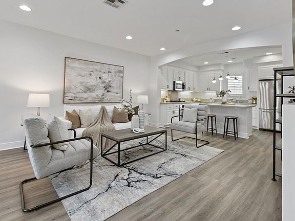 Modern, Silicon Valley Living Awaits in this Luxury Residence! Located on a tree-lined, peaceful street in the heart of Midtowns Village Square. 3 PRIMARY BEDROOMS w/ ensuite baths including one located on the ground level. Sleek Chef-Inspired Kitchen showcasing an island w/ breakfast bar, white shaker cabinetry, Caesarstone countertops, SS Appliances, GAS COOKTOP, built in oven. GRAND PRIMARY RETREAT boasts walk in closet w/ built-in organizers; En-suite bath w/ double sink vanity & spacious stall shower. Custom upgrades feature: newer wood-like floors throughout, recessed lighting, plantation window treatments, keyless door lock, Interior laundry room. The 2 car side-by-side garage has been freshly epoxied for a sleek, new look. Tranquil VIEWS from the sunny deck! FAST FIBER INTERNET AVAILABLE for this home. Premier Village Square community has well-appointed community park with children's play structure and picnic tables. LOW HOA: $460 /month. Wander through the charming streets of the adjacent Rose Garden neighborhoods through a back access gate. Nearby shopping, dining, SAP Center, The Alameda, Santana Row, Valley Fair Shopping, & Diridon Transportation Hub. Your elevated lifestyle in the heart of Silicon Valley awaits!