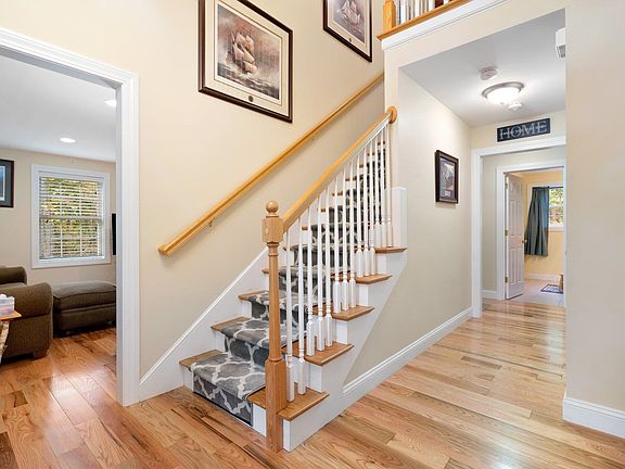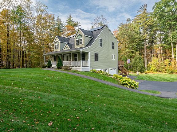 Discover the elegance and comfort in this pristine custom cape, nestled on a sprawling 2.8-acre lot along a serene country road. Boasting nearly 2500 square feet of living space, plus an expansive unfinished basement for storage or future expansion. The winding driveway welcomes you with a large farmer's porch and a convenient 2-car garage. Step through the new front door into an inviting open foyer that transitions into a custom kitchen designed to relax and get creative, featuring a 7-foot center island, granite countertops, and stainless appliances, including an induction stove. Sliding doors lead to new composite decking, offering a perfect indoor and outdoor living blend. Entertain in style in the adjacent dining room or unwind in the front-to-back living room, complete with a fireplace. The primary suite is a haven, offering a walk-in closet, a private bath with tile flooring, double sinks, a step-in shower, and a soaking tub. Every detail of the home has been meticulously maintained. Newer and upgraded features include wide plank hardwood and tile flooring, new faucets, recessed lighting, a new garage door, a heated garage, and whole-house surge protection. FHA heating with a whole-house filter, central air, and lush landscaping with irrigation. Additional storage in the Tufts shed and energy-efficient solar panels. Your dream home awaits. Open house Saturday 3/9 from 11-1 pm. Offer deadline Sunday at 7pm