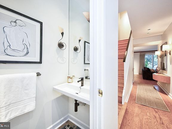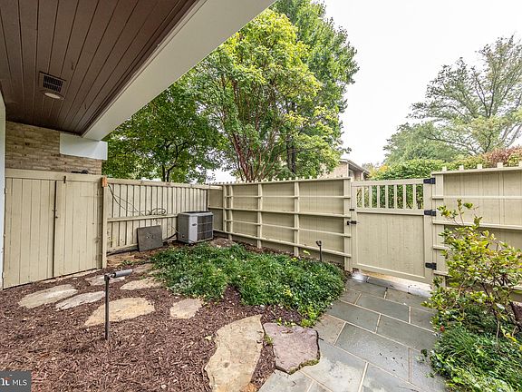 Welcome to 44 Olmsted Green Court in The Village of Cross Keys. This mid-Century modern end-of- group brick townhome is very light filled with large sliding glass doors. The home maintains its mid-century feel while having been maintained and upgraded. These homes are highly sought after and do not frequently come on the market. The home has an enclosed front courtyard. The rear bluestone terrace is sheltered on three sides and includes a water feature with stone walls. The home has a wonderful gourmet kitchen with custom cherry cabinets and expansive granite countertops. The gourmet kitchen appliances include a Sub Zero refrigerator, Dacor gas cooktop, oven and exhaust hood, and a Bosch dishwasher. There is a bult in microwave and under cabinet lighting adds to the ambiance. It is completely open to the family/dining area that has a glass slider door to the front courtyard. The kitchen and the floors were replaced and upgraded to terrazzo by the current owners in the kitchen and family/dining area. The main floor and the second floor have recessed ceiling lighting throughout. One wall of the family/dining area includes a natural gas fireplace set in a slate surround with built ins on both sides. The flooring in the remainder of the first floors were replaced with wood at the same time. The half bath on the main floor was also recently updated by the current owners. The living room spans the entire width of the rear on the main level of the home and has double glass sliders that open onto a sheltered bluestone terrace with plantings with a stunning water fall feature with a sitting wall on two sides that provides a soothing sound. The stairs and second floor have hardwood floors and the primary bedroom floors were recently refinished by the current owners. The large primary bedroom is over the living room and also has double sliding doors that overlook the terrace. There is a expansive closet the covers the end wall of the bedroom. The primary bathroom has high-end finishes with marble floors and counter. There is a walk-in shower and a bidet toilet. The laundry is also set into an alcove in the primary bathroom. There is a second bathroom for the other two bedrooms. The additional two bedrooms also have sliding doors for ample light. One of the bedrooms is currently being used as an office. The living room, kitchen, family/dining area and primary bedroom are wired for sound with speaker wires terminating in a family/dining area cabinet. The main floor primary rooms are wired for sound as is the primary bedroom. The square footage and room dimensions are close approximates.