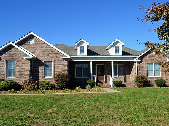 Beautifully manicured 3500 sq ft 2 story brick home with walkout basement. Upper level has 3 bedrooms, 2 full baths, formal living room with cathedral ceiling and gas fireplace, formal dining room, large kitchen with eating space, hardwood, carpet, tile floors, crown molding throughout, forced air, central vac, 2 car attached garage with storage room above. Upper level has 1900+ square feet. Lower level has complete mother-in-law suite with large bedroom and walk-in closet, extra room for possible 2nd bedroom, full bath with walk-in shower, carpet and tiled floors, and patio. Lower level has 1450 finished square feet. Additional 2 car detached garage with workshop, finished inside with air-conditioning and water, separate storage area. Upgrades and amenities: New roof summer of 2010 New hot water heater fall of 2010 Radon reduction system summer of 2007 Home sits on .60 of an acre and has an extra .60 lot attached. Conveniently located between Glasgow and I-65 off Hwy90. 44 Paddock Way, Cave City, KY Price $230,000, serious inquiries ONLY. Contact Pam Richcreek 302-841-4087 or Steve Duke n270-792-3736.