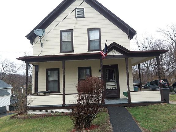 Owner occupied spacious 2 family. Owners apartment has lots of kitchen cabinets with a butler's pantry, off the second bedroom is a 3 season room all in pine, large living room and bedroom. Second floor has a spacious kitchen with some cabinets, large second bedroom and living room and bedroom. One heating system for both apartments, two pellet stoves are negotiable, newer propane hot water tanks and newer steam boiler. Walkout basement with a storage area under both seasonal rooms. detached 2 car garage needs some work.