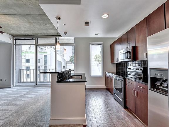HIGHLY SOUGHT AFTER PLAZA MIDTOWN - LUXURY, SPACIOUS 1 bed, 1 bath condo! AMAZING AMENITIES - 24/7 CONCIERGE, 24/7 FITNESS CENTER, POOL, CLUBHOUSE, BBQ GRILLS, OUTDOOR GREEN SPACE and more! UNBEATABLE LOCATION - LESS THAN 1 BLOCK AWAY FROM MIDTOWN MARTA STATION, easy access to AIRPORT, GEORGIA TECH, PIEDMONT PARK, RESTAURANTS, I-85/75, etc! PUBLIX GROCERY STORE DOWNSTAIRS IN SAME BUILDING! You can take elevator from the unit directly to Publix, truly unbeatable convenience! Unit offers OPEN CONCEPT LIVING, FLOOR TO CEILING WINDOWS, BALCONY for view and fresh air, PLENTY OF NATURAL LIGHT! Modern kitchen with GRANITE COUNTERTOPS, STAINLESS STEEL APPLIANCES, and TILED BACKSPLASH! Breakfast bar opens into spacious living room! BUILT-IN DESK! Bedroom offers walk-in closet. Bathroom with tub/shower combo and large vanity! WASHER/DRYER INCLUDED! 1 ASSIGNED PARKING SPOT in COVERED and SECURED GARAGE! This MOVE-IN READY CONDO is ready for you to enjoy! $50 flat monthly for water/sewer/trash, $50 flat monthly for internet. $75 application fee, $250 move-in fee. SCHEDULE YOUR SHOWING TODAY!