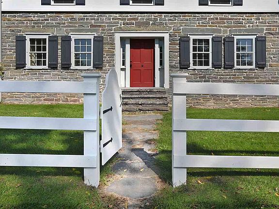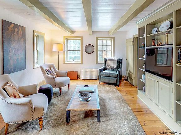 Picturesque storybook farm house located on a charming country road. This stone and wood farm house has been updated with modern amenities while retaining antique details like beamed ceilings, wood burning fireplace and exquisite wide board floors in the double parlors and den. For the home Chef, the eat-in gourmet kitchen is a cook's dream with a gas range, stainless steel appliances, custom cabinets, and plenty of counter and storage space. Steps away is a spacious screened porch for summer dinner parties or a relaxing morning coffee. The large master bedroom and full bath is your own oasis. Modern features include central A/C, fire pit, heated gunite pool with hot tub, and a large pool house with a wet bar and bathroom. Professional landscaping surrounds the home and adds a added sense of privacy to the pool area and courtyard garden. This is a special property with a sense of history and just minutes from the village of Stone Ridge, and a short drive to Kingston, Woodstock, and Rhinebeck. All of this is less than 2 hours from NYC.